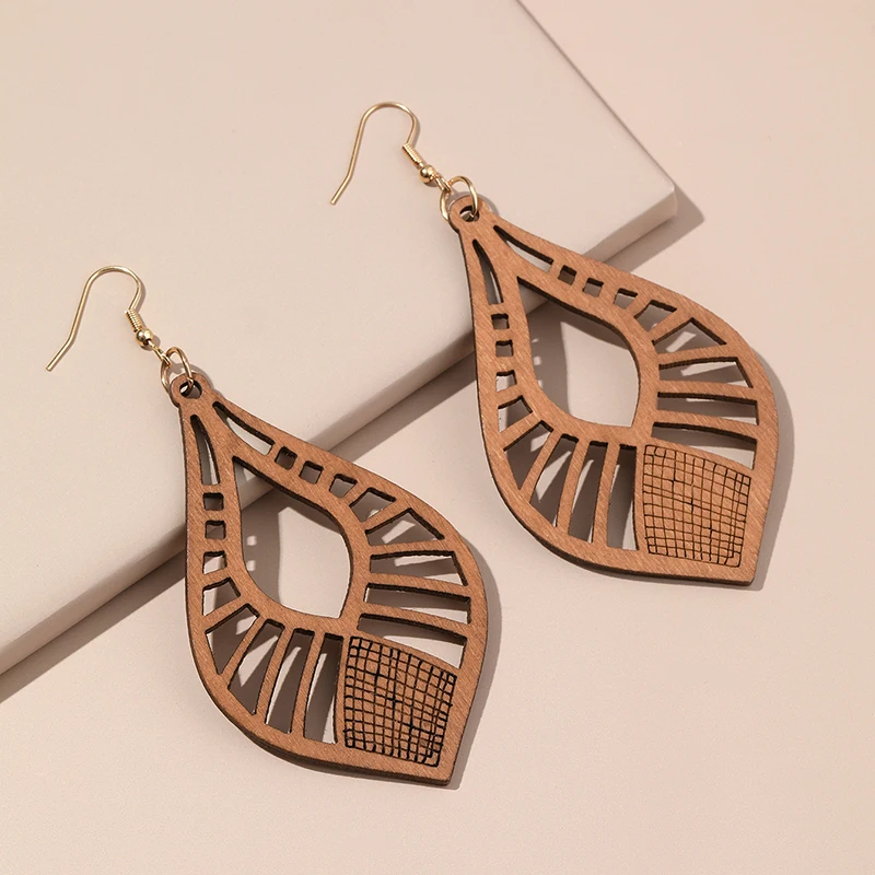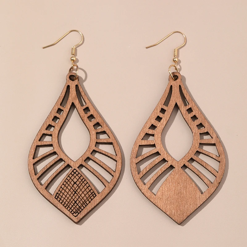 Boucles d'Oreilles en Bois Goutte d'Eau
